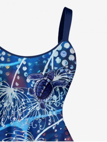 Plus Size Turtle Coral Flower Print Hawaii Sea Creatures A Line Dress - Blue - S