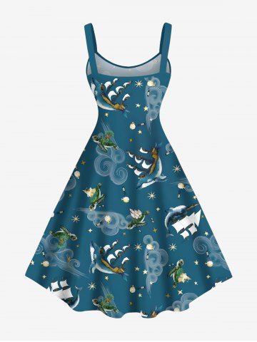 Graphic Dresses > Plus Size Turtle Dolphin Sea Waves Sailboat Stars Print Hawaii Sea Creatures Cruise A Line Tank Dress