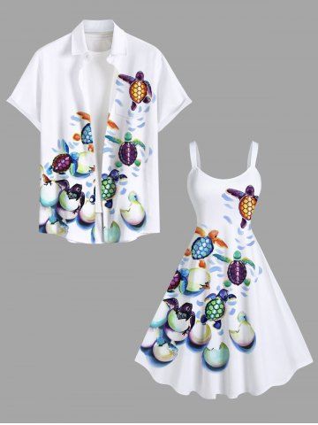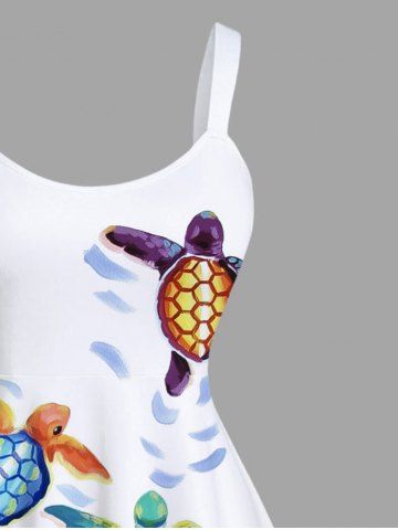 Plus Size Turtle Eggs Beach Print Hawaii Sea Creatures A Line Tank Dress - White - L