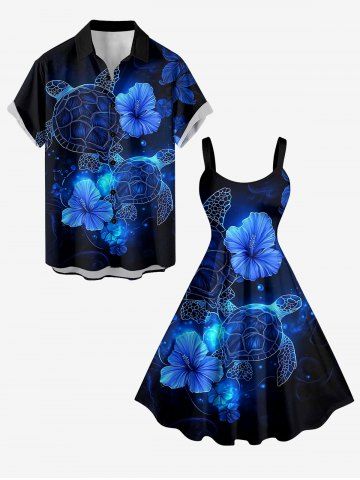 Graphic Dresses > Plus Size Turtle Hibiscus Flowers Print Hawaii Tank Dress