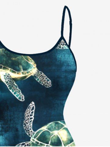 Plus Size Turtle Ombre Sea Print Hawaii Sea Creatures High Low Asymmetric Cami Dress - Deep Green - M