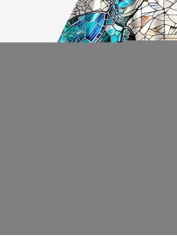 Plus Size Turtle Sailor Coloured Glass Print Hawaii A Line Dress - White - Xs