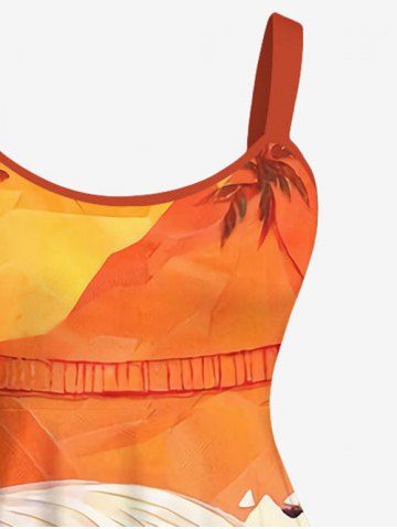 Plus Size Turtle Sea Waves Sun Dusk Print Backless Hawaii Sea Creatures A Line Tank Dress - Orange - 5x