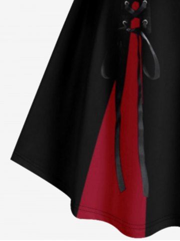 R*****r5Gothic Lace-up Cinched Two Tone Godet Hem A Line DressColor: BLACK Size: L | US 12I had to size up due to my chest size but it fit okay and looked nice on me. I had to wait a while for it to get here but once it did I was pleasantly surprised.