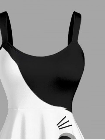 Graphic Dresses > Plus Size Two Tone Cat Print A Line Dress