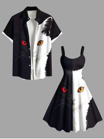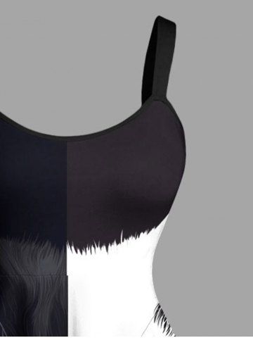 Graphic Dresses > Plus Size Two Tone Cat Print A Line Tank Dress