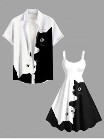 Plus Size Two Tone Cats Print Hawaii Tank Dress - White - 3x