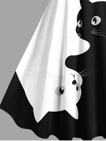 Plus Size Two Tone Cats Print Hawaii Tank Dress - White - 5x