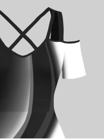 Plus Size Two Tone Coconut Tree Highway Colorblock Print Cold Shoulder Crisscross Hawaii Maxi Dress - Multi-a - 1x