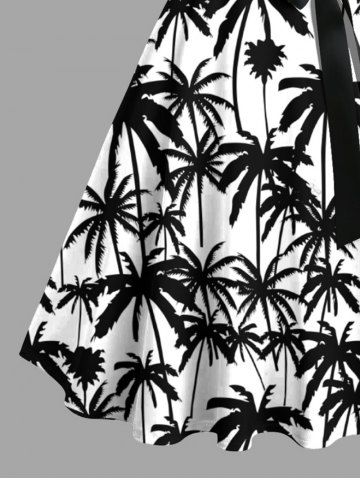Graphic Dresses > Plus Size Two Tone Coconut Tree Print Buttons Turn Down Collar Hawaii Dress With Belt