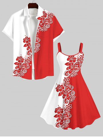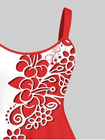Plus Size Two Tone Colorblock Flowers Print Hawaii Tank Dress - Red - 3x