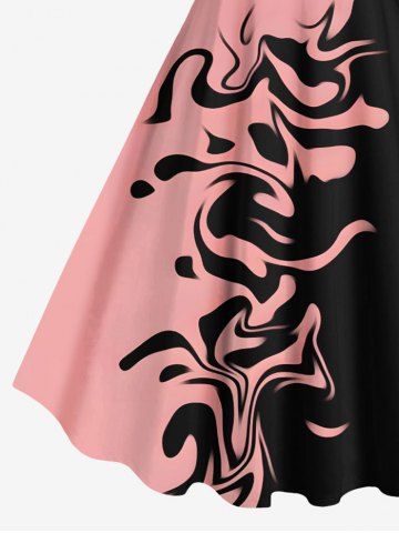 Plus Size Two Tone Contrast Colorblock Print Hawaii Tank Dress - Light Pink - L