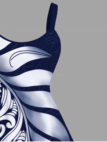 Graphic Dresses > Plus Size Two Tone Contrast Colorblock Tropical Leaf Print Hawaii Tank Dress