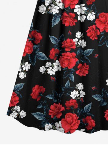 Plus Size Two Tone Floral Ombre Leaves Print Hawaii Surplice A Line Cami Dress - Red - Xs