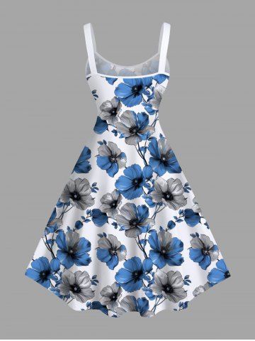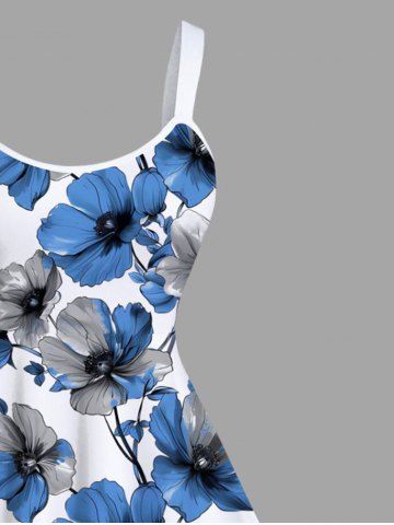 Plus Size Two Tone Flower Branch Print Hawaii A Line Tank Dress - Sky Blue - 4x