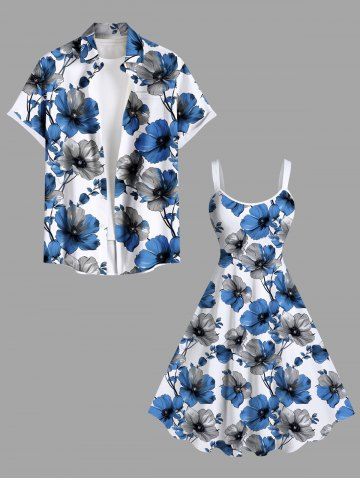 Graphic Dresses > Plus Size Two Tone Flower Branch Print Hawaii A Line Tank Dress