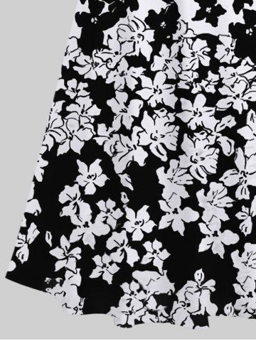 Graphic Dresses > Plus Size Two Tone Flowers Colorblock Print Cold Shoulder Crisscross Hawaii Maxi Dress