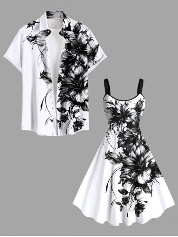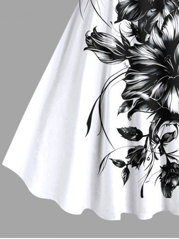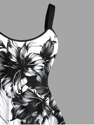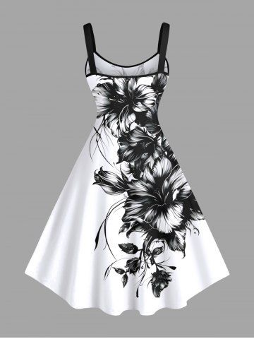 Plus Size Two Tone Hibiscus Flower Leaf Print Hawaii Tank Dress - White - 6x