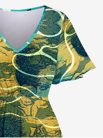 Graphic Dresses > Hawaii Pocket Plus Size Underwater Sea Creatures Turtle Print Split Dress