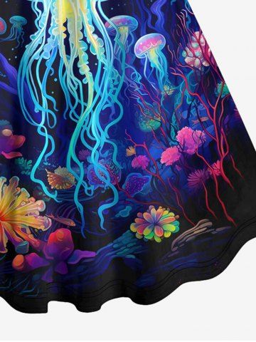 A*****a5Hawaii Plus Size Sea Creatures Underwater World Plant Jellyfish Glitter 3D Print Tank DressColor: BLACK Size: 2XVery light weight comfortable - I like wearing these around home. Prints are usually nice