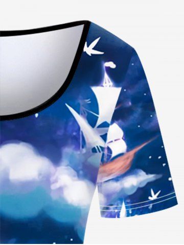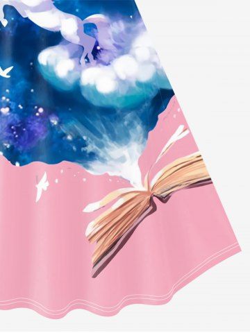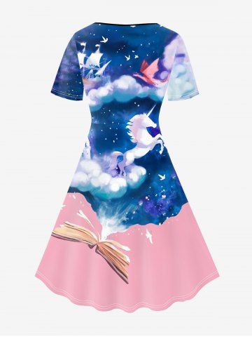 Plus Size Unicorns Printed Colorblock Short Sleeves A Line Dress - Blue - 4x | Us 26-28