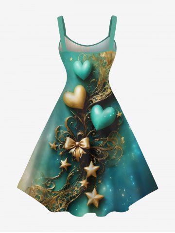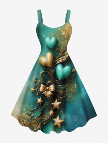 Plus Size Valentine's Day Bowknot Heart Star Ombre Print Tank Dress - Green - 2x