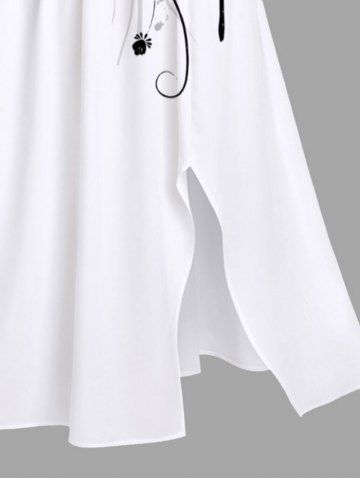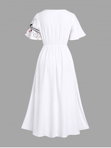 Plus Size Valentine's Day Heart Flowers Leaf Print Split Midi Dress - White - 3x