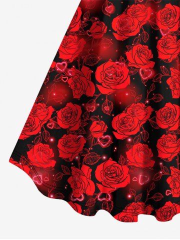 Graphic Dresses > Plus Size Valentine's Day Rose Flower Heart Buckle Belt 3D Print Tank Dress
