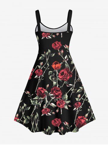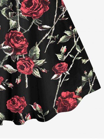 Plus Size Valentine's Day Rose Flower Leaf Grommets Lace Up 3D Print Tank Dress - Black - 6x