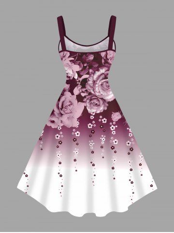 Plus Size Valentine's Day Rose Flower Tassel Ombre Print Tank Dress - Purple - L