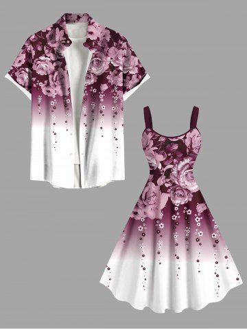 Plus Size Valentine's Day Rose Flower Tassel Ombre Print Tank Dress - Purple - 3x