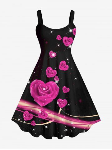 Graphic Dresses > Plus Size Valentine's Day Rose Flowers Heart Glitter Sparkling Sequin 3D Print Tank Dress