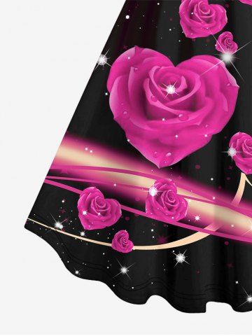 Graphic Dresses > Plus Size Valentine's Day Rose Flowers Heart Glitter Sparkling Sequin 3D Print Tank Dress