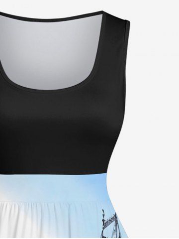 Plus Size Vintage Baroque Floral Water City Ombre Sky Print Swing A Line Dress - Multi-a - M