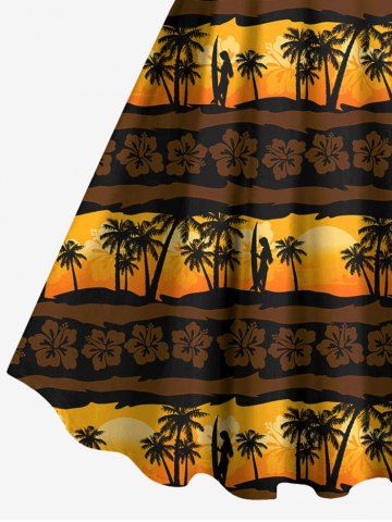 Graphic Dresses > Hawaii Plus Size Vintage Coconut Tree Flower Striped Dusk Print Backless A Line Tank Dress