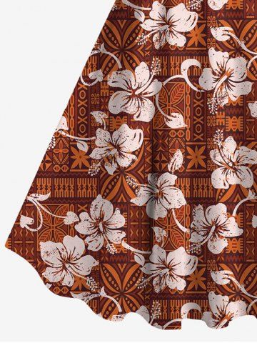 Graphic Dresses > Hawaii Plus Size Vintage Floral Patternblock Graphic Print Backless A Line Tank Dress