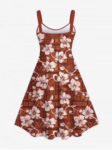 Graphic Dresses > Hawaii Plus Size Vintage Floral Patternblock Graphic Print Backless A Line Tank Dress