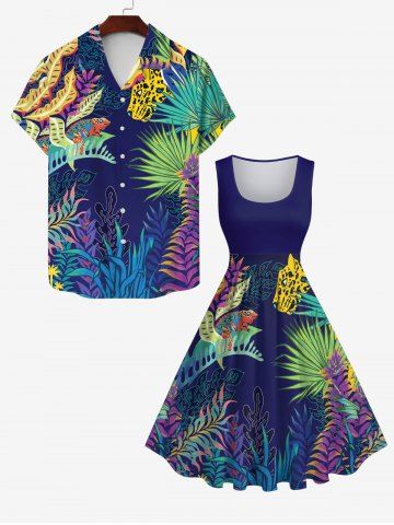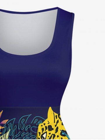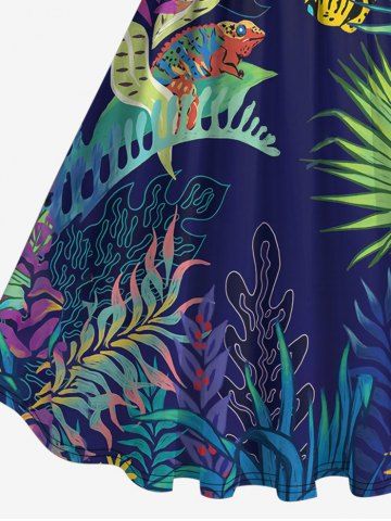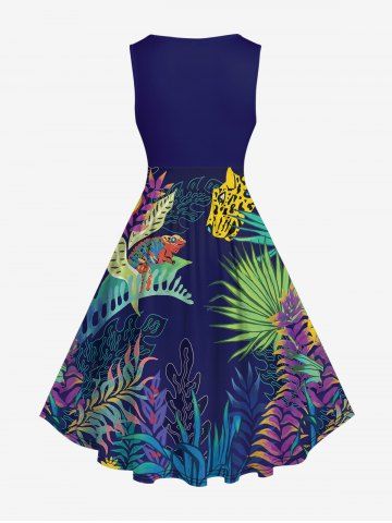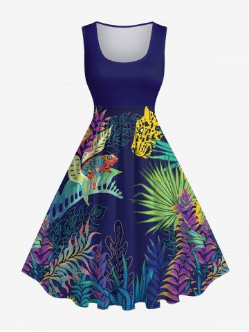 Plus Size Vintage Seaweed Waterweed Chameleon Leopard Underwater World Printed Hawaii Sea Creatures 1950s Dress - Deep Blue - L