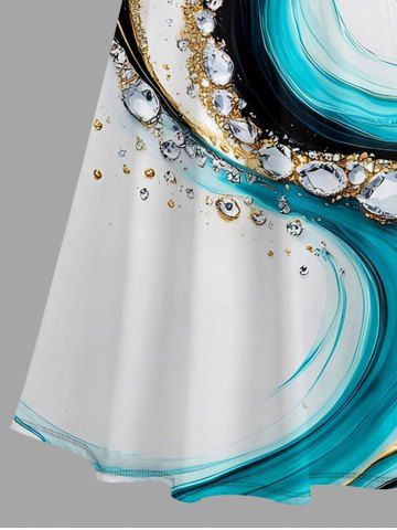 Graphic Dresses > Plus Size Water Ripple Curve Diamond Print Hawaii Cold Shoulder Crisscross A Line Maxi Dress