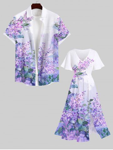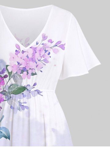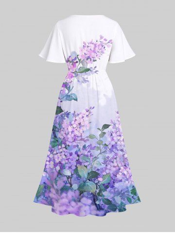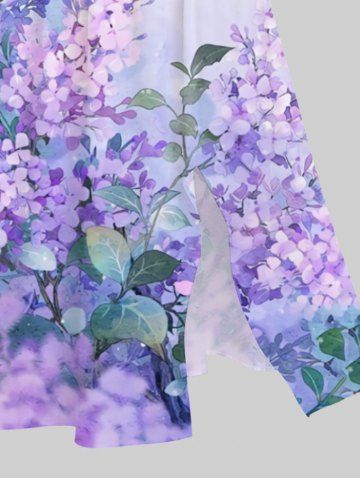 Plus Size Watercolor Flowers Leaf Ombre Print Split Hawaii Midi Dress - Multi-a - 2x