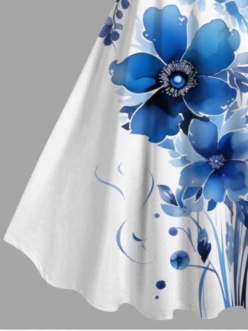 Plus Size Watercolor Flowers Print Hawaii Tank Dress - Blue - 5x