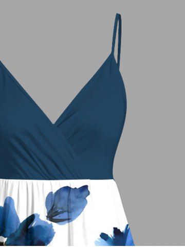 Plus Size Watercolor Flowers Print Surplice Hawaii Cami Dress - Blue - L