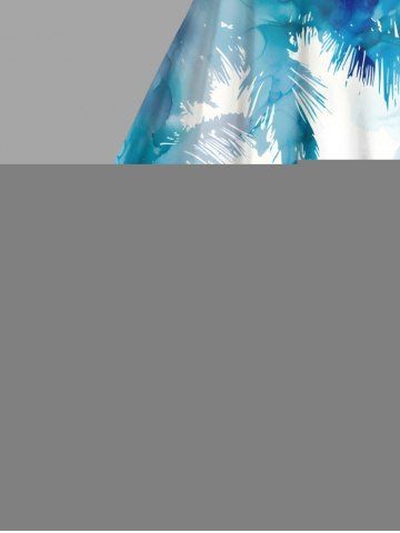 Plus Size Watercolor Tie Dye Coconut Tree Print Hawaii A Line Tank Dress - Light Blue - Xs