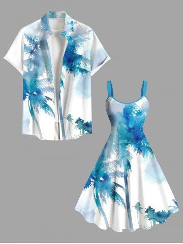 Plus Size Watercolor Tie Dye Coconut Tree Print Hawaii A Line Tank Dress - Light Blue - L