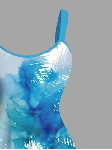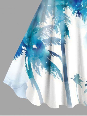 Plus Size Watercolor Tie Dye Coconut Tree Print Hawaii A Line Tank Dress - Light Blue - 6x