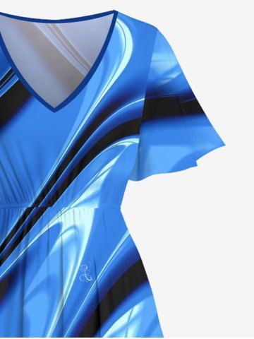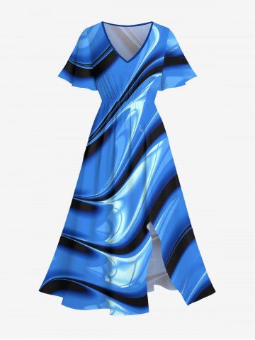 Plus Size Wave Gradient Abstract Art 3D Print Split Hawaii Midi Dress - Sky Blue - 5x