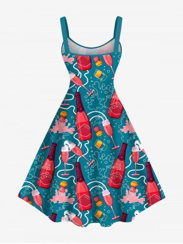 Plus Size Wine Bottle Sea Print Hawaii A Line Tank Dress - Green - 5x