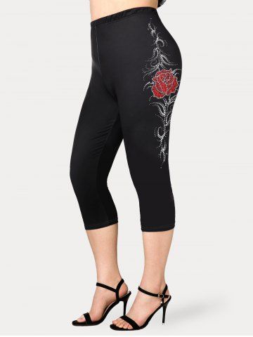 High Waisted Rose Plus Size Leggings - Black - M | Us 10