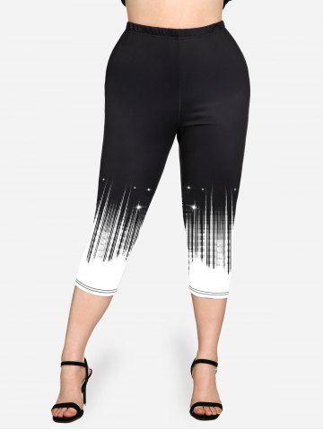 Plus Siz 3D Sparkles Pinstripes Printed Capri Leggings - Black - 3x | Us 22-24