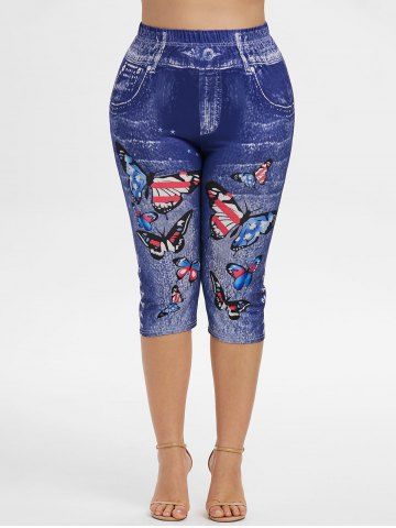 Graphic Leggings > Plus Size 3D Butterfly Pockets Denim Print Capri Jeggings